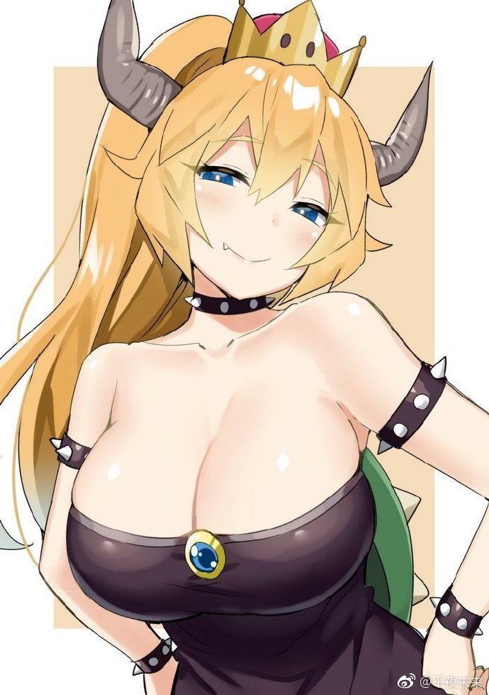 頭にツノ、キバ、とげとげの亀の甲羅、尻尾と所々にクッパの名残はあるものの、金髪の姫になっているというクッパ姫。