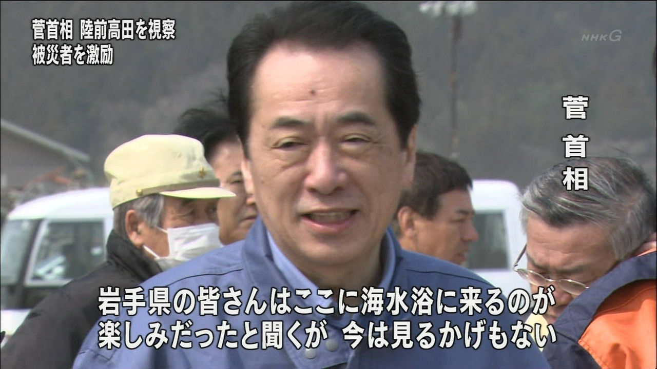 菅直人首相(64)は2日、東日本大震災で甚大な被害を受けた岩手県陸前高田市と、東京電力福島