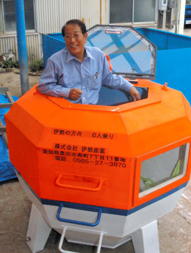 ▽画像:開発中の「伊勢の方舟」に乗り込む山本憲男社長
