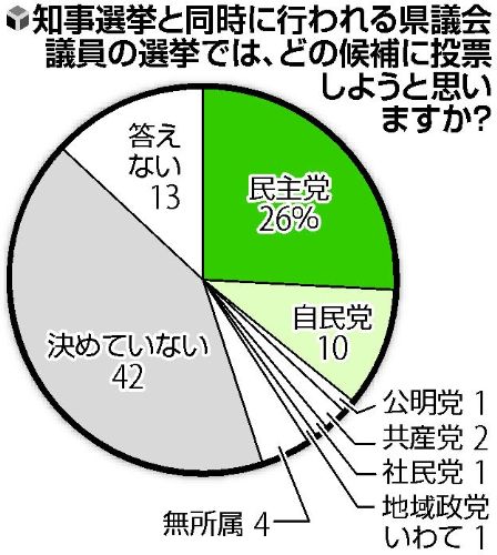 - 11日投開票の知事選について、読売新聞が2〜4日に県内で実施した世論調査で支持政党を尋ねたところ、