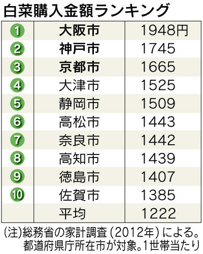 ★大阪人はなぜ白菜好きなのか? 購入額トップ独走