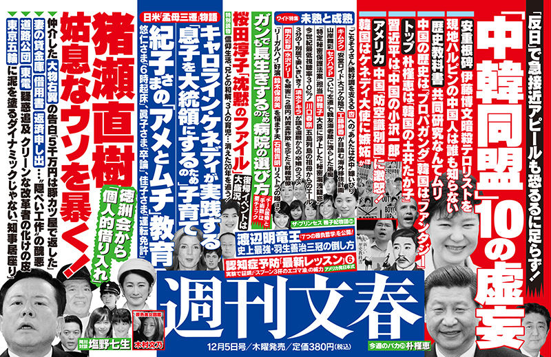 週刊文春をめぐっては11月21日号に掲載された、安倍晋三首相が「韓国はただの愚かな国」と発言したとの記事に対し韓国で反発が広がり、