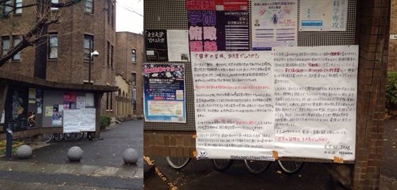 19日、あるインターネットコミュニティには「東京大学正門の掲示板に壁新聞つけてきました」