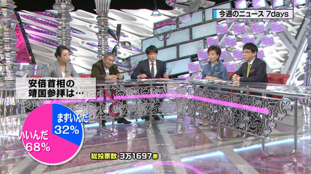 3万超の投票がなされた結果、68%が「安倍首相の靖国参拝は」に賛意を示し、
