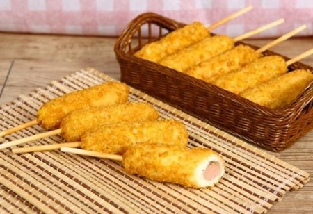 『韓国小麦5無コーンフレークホットドッグ』はホットドッグの表面にコーンフレークを加え、