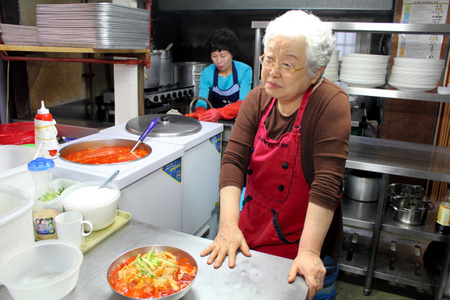 ソウルの飲食店「イブク ソンマンドゥ」を切り盛りする朴恵淑さん