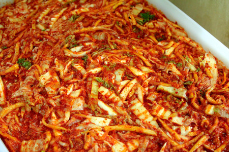 キムチマリパプの材料にするキムチ。普通のキムチとは少し味付けが違う