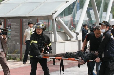 ¥¿¡¼¥ß¥Ê¥ë·úʪ¤Ë¤ÏÂç·¿¥Þ¡¼¥È¤È±Ç²è´Û¤Ê¤É¤¬Æþµï¤·¤Æ¤¤¤Æ²Ð»ö¤¬µ¯¤³¤ë¤È¤¹¤°¤Ë¹õ¤¤±ì¤¬Î©¤Á¾º¤Ã¤Æ¶áÎÙ¤òʤ¤Ã¤¿¡£
