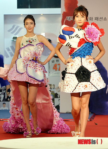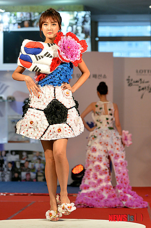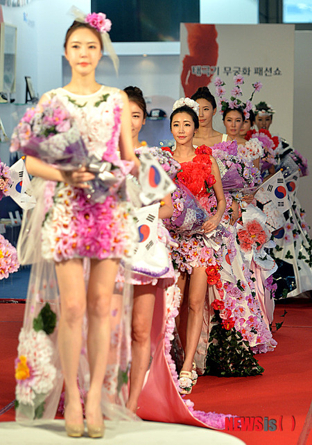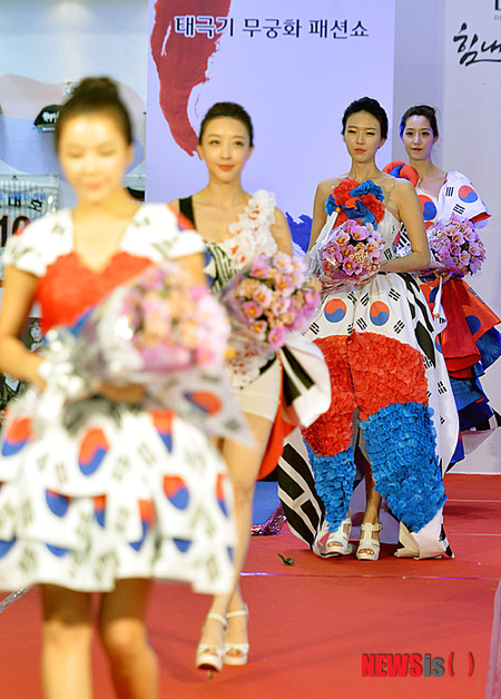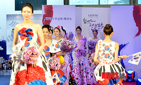 ソウル市中区のロッテ百貨店本店前で2日午前、「太極旗(韓国の国旗)ムクゲ(韓国の国花)異色ファッションショー」が行われ、