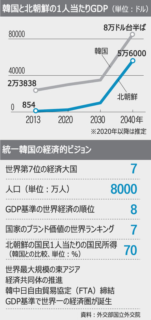 2040年に南北が統一され「統一韓国」となれば、経済的に主要7カ国(G7)に入れるだけでなく、