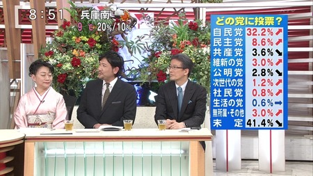 マスコミ的にはこの未定 41.4% がすべて民主に入れるとかんがえてるのかなw