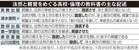 法然と親鸞をめぐる高校・倫理の教科書の主な記述(写真:産経新聞)