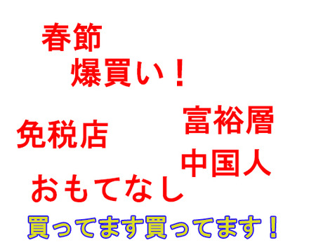 特大サイズの紙袋をパンパンにして、なんか嬉しそうにしゃべってる中国人観光客を見かけたよ。
