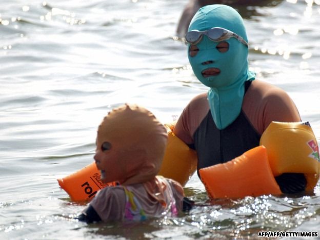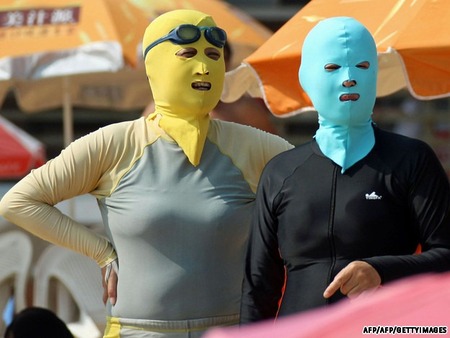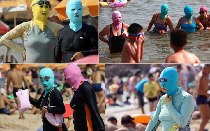 ちなみに『face-kinis』は中国のビーチでは当たり前! なんだかちょっと不気味な光景ですが、どこかのマスク集団がやって来ているわけではありません。