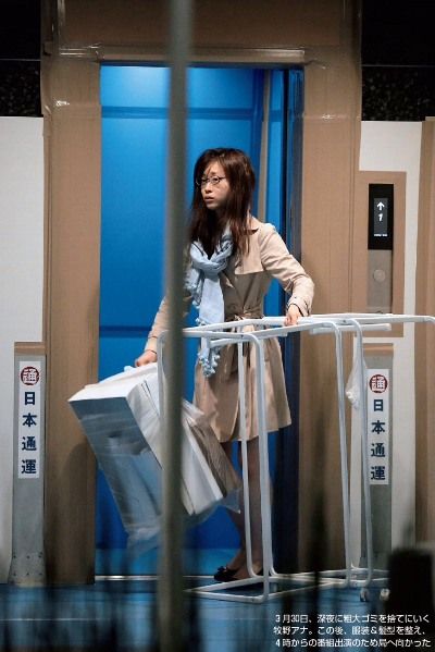 夜11時過ぎのゴミ出し場面。貴重なスッピン姿で髪はボサボサ、しかも、朝着ていたコートをバースローブのように着こなし美脚も披露する無防備っぷりなのだ。