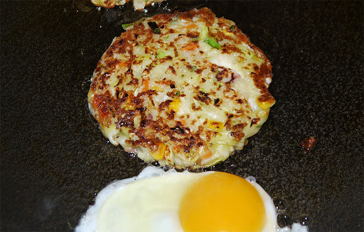 たとえば、韓国の屋台で売られているお好み焼きは食べながら歩けるサイズになっていて、まるでハンバーガーからパンだけを取り除いたような形をしています。