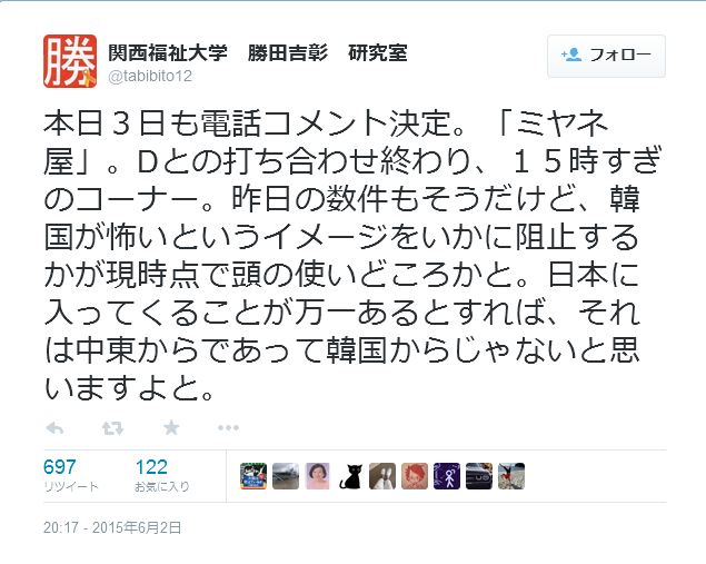 昨日の数件もそうだけど、韓国が怖いというイメージをいかに阻止するかが現時点で頭の使いどころかと。
