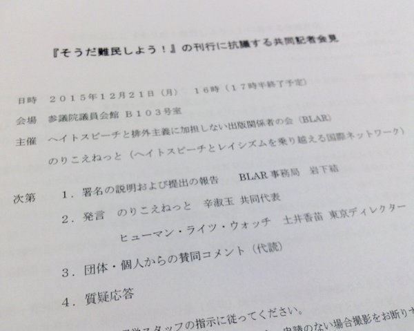 『そうだ難民しよう!はすみとしこの世界』刊行に抗議する記者会見を、