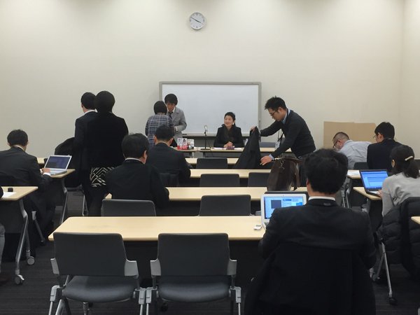 記者会見始まりました。左からBLAR森さん、岩下さん、のりこえねっと辛淑玉さん、