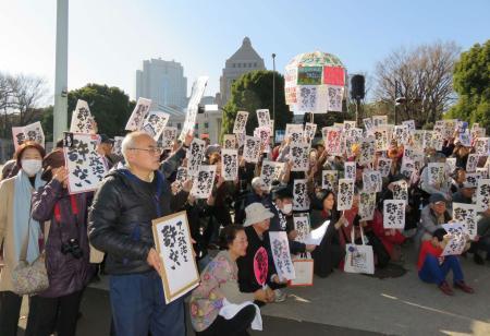作家沢地久枝氏(85)の発案で昨年11月から毎月行われている安倍政権への抗議デモが3日、国会前で行われた。