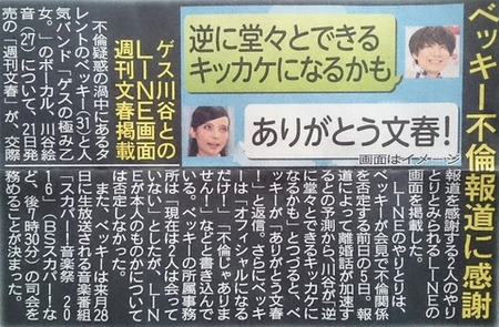 よって、ベッキーの不倫騒動は今後も載り続けますし、ベッキーや川谷にとって最悪レベルのLINE画像やメッセージを掲載していくようです。