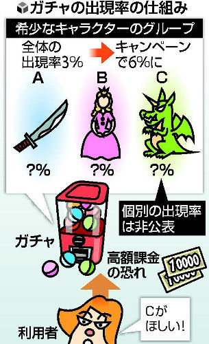 アップすると告知したが、「目当てのキャラクターが当たらない」との声がインターネット上などで相次いだ。