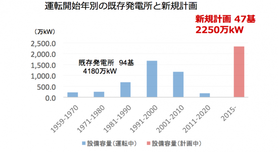 にわかに全国各地で大型の石炭火力発電所の新設計画が動き出した。その出力の合計は、100万キロワット級原発20基分以上となっている。