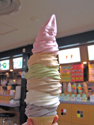 来て精巧なガラス細工を買わなかったとしても、6段ソフトクリームだけは食べない訳にはいかない。