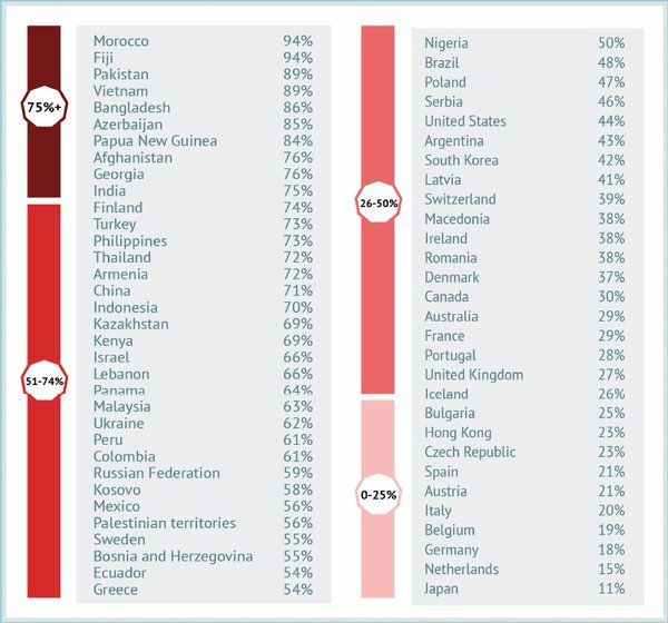 朝鮮戦争が終わってない韓国はそりゃパーセンテージ高いわな