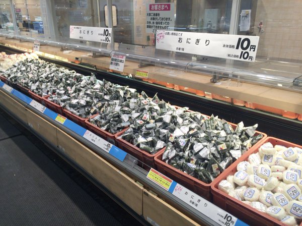 イオンモール熊本(クレア)は供給過多のようで、おにぎり10円、弁当100円、菓子パン30円