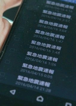携帯電話に残された緊急地震速報の履歴。最初の地震があった14日以降、ひっきりなしに続いている