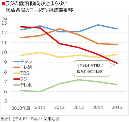 民放各局のゴールデン視聴率推移
