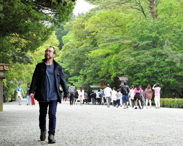 内宮の神域を歩くスペインの紀行作家スソ・モウレロさん