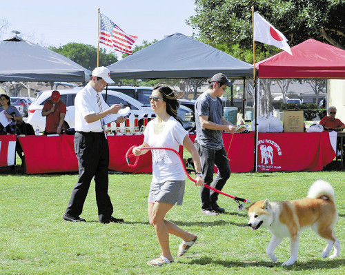 今年2月、米カリフォルニア州で開かれた秋田犬保存会の展覧会=宮沢輝夫撮影