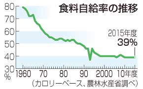 農林水産省は2日、2015年度の食料自給率(カロリーベース)が6年連続の39%だったと発表した。