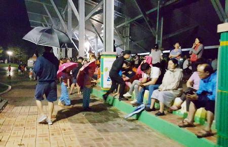 地震で公園に避難した住民ら=12日、韓国・蔚山(聯合=共同)