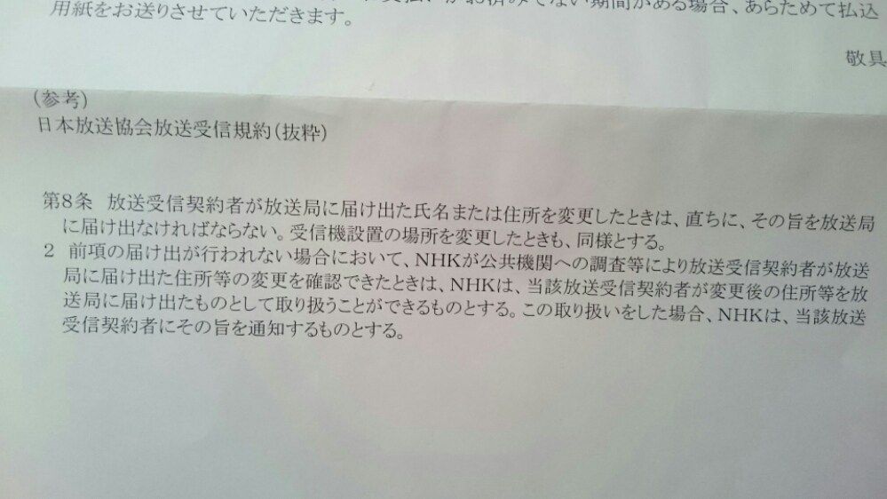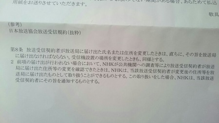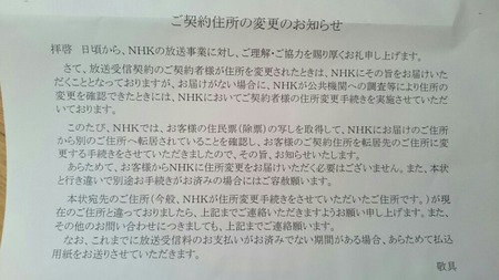 勝手にNHKが住民票を取得して、NHKに登録している我が家の住所変更したという知らせが届きました。