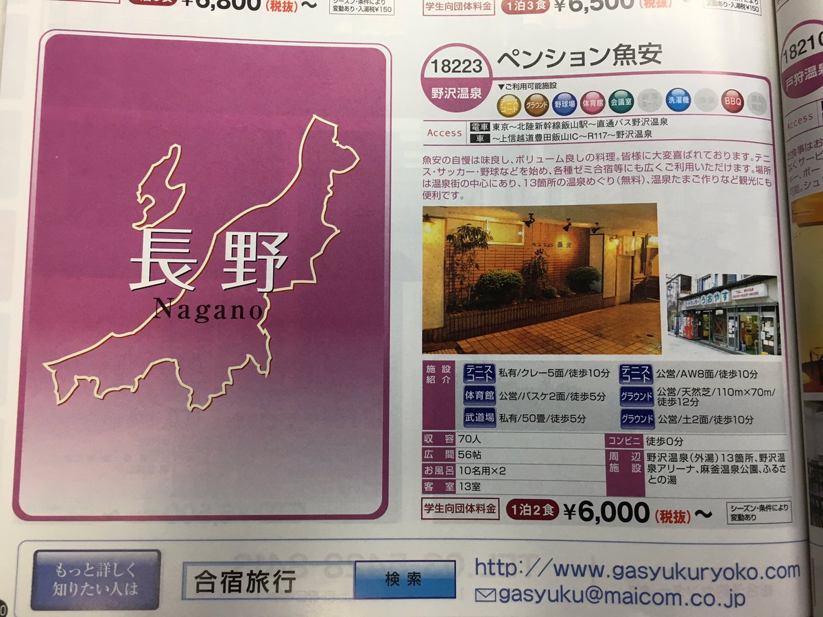 これは、各地にあるペンションなどの宿泊施設を紹介した冊子を撮影したものだ。投稿者はまず長野県のページを見て