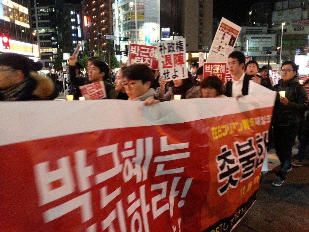 新宿でも続く朴大統領退陣デモ