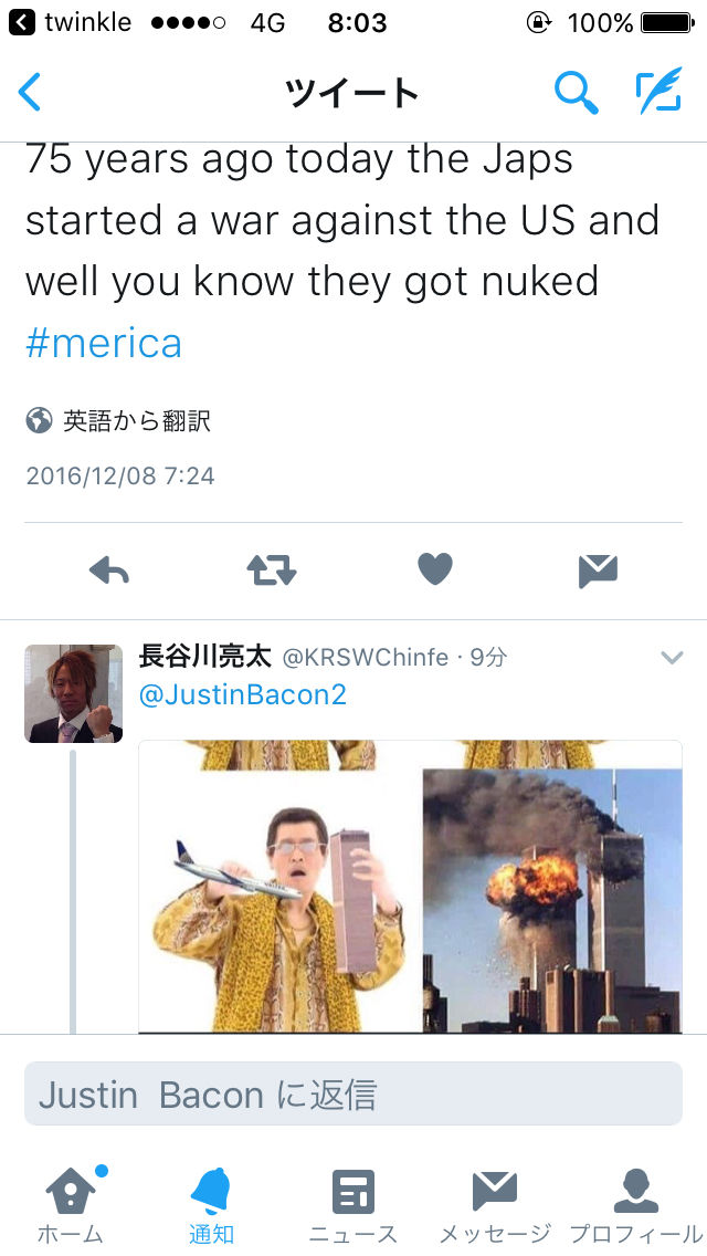 75 years ago today the Japs started a war against the US and well you know they got nuked #merica