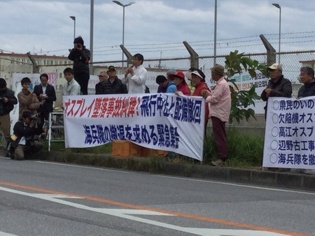 オスプレイの飛行中止と配備撤回、海兵隊の撤退を求めています。