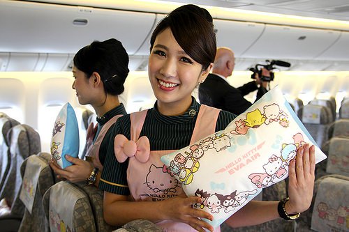 同機には「ハローキティ」がペイントしてあり、機内の特性の枕とトイレ用品には日本のサンリオのエンブレムがあしらわれ、トイレットペーパーにもハローキティが描かれていた。