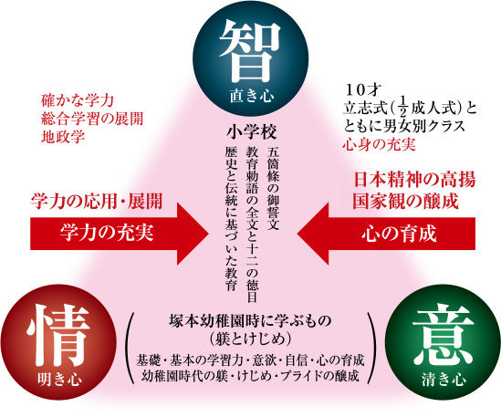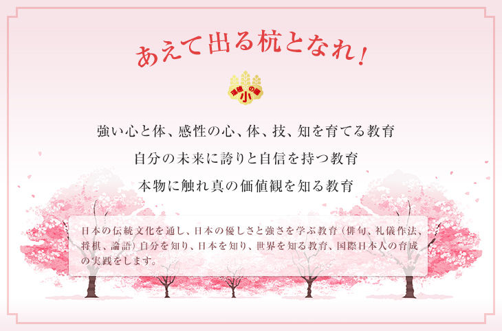 先人から伝承された日本人としての礼節を尊び、それに裏打ちされた愛国心と誇りを育て、すべての子供が持っているたくましい生命力と