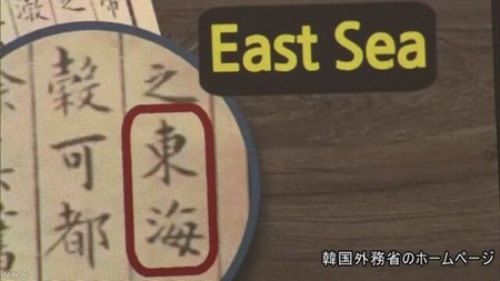 外務省によりますと、日本海の呼称をめぐって、韓国外務省のホームページに、韓国政府が主張している「東の海」を意味する「トンヘ」、英語で「East Sea」という見出しがつけられた2種類の動画が掲載されているのを、20日、確認したということです。