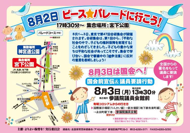 8月2日、「子どもに平和を!」ピースパレード(主催:よりよい保育を!実行