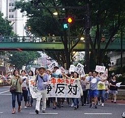 「戦争法案反対!」と訴え、沿道からも声援が寄せられました。