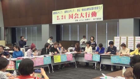 “保育園落ちた” 親たちが国会内で集会 早急に受け皿を