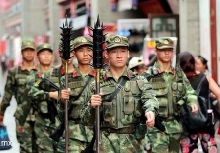 中国の城官(地方自治体が雇う私設軍隊)って実際にこういう道具を実際に使うんで問題になってたけど、この格好だと正規軍も採用してるのか?