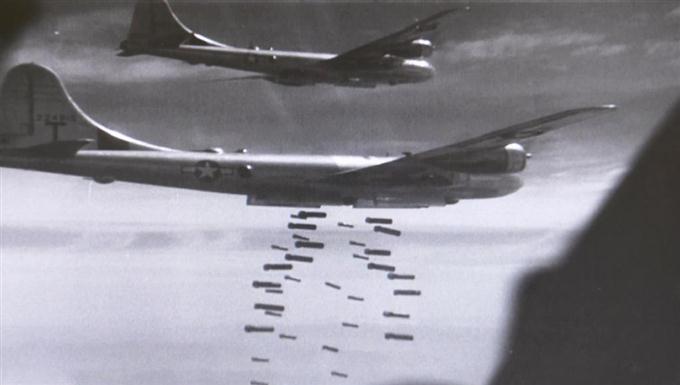 市街地にB29爆撃機が焼夷(しょうい)弾を投下する場面や、列車への