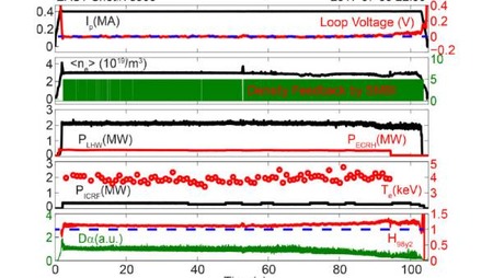 中国科学院は5日、核融合実験炉「Experimental Advanced Superconducting Tokamak(EAST)」を使った実験で、101.2秒間に渡ってプラズマを封じ込め、ロングパルスHモードの条件下におけるプラズマ封じ込め時間の世界記録を更新した成功したことを発表した。同院によるとこの間のピーク温度は50,000,000 K(50,000,000C)に達した。